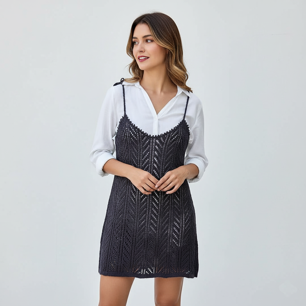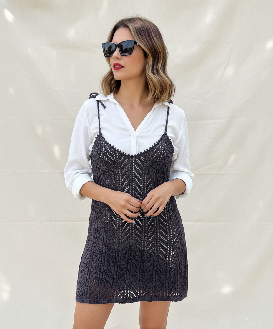 Ligero vestido de algodón, suave y cómodo con detalles de resalte en hilo.